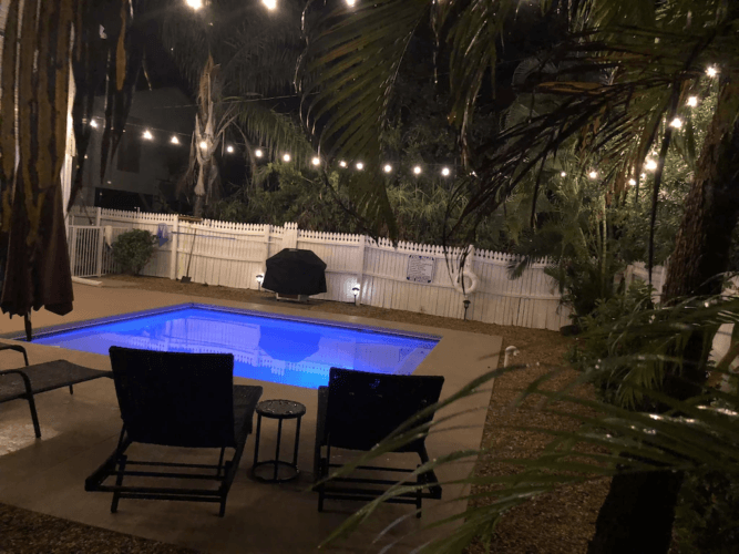 Heading outside you will enjoy the relaxing back yard. A sophisticated and private outdoor space with loungers will have you begging for more tanning time in the backyard! Cool off in your private in-ground heated salt pool. Use the outdoor shower for a lovely refreshing experience and to rinse off the sand between your toes. Enjoy barbecuing with your loved ones as you sit down at the outdoor dining table and chairs complete with umbrellas throughout to protect you from the sun’s rays. At night, Cafe lights in the backyard create a warm glow for lighting and ambiance.